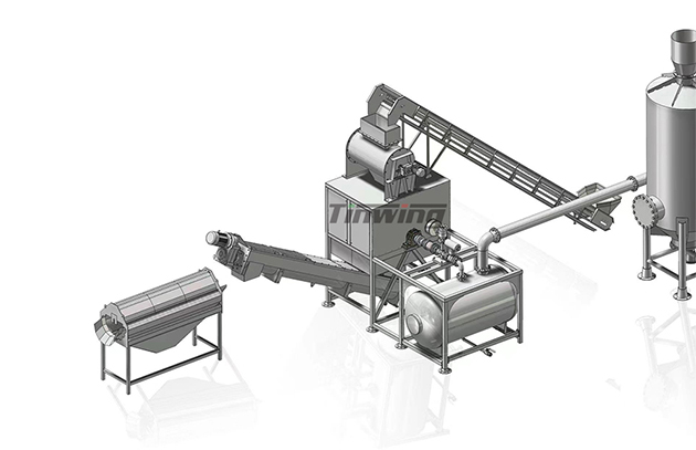 輸送系統(tǒng)用于清洗好的物料輸送至壓力倉,當(dāng)壓力蒸汽達到設(shè)定壓力時開始去皮工作。它利用蒸汽的特性,...